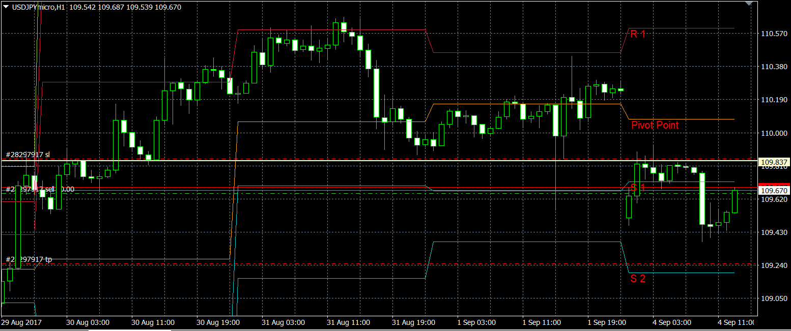 ・S1ブレイクで逆指値注文の売り。S2で利益確定。