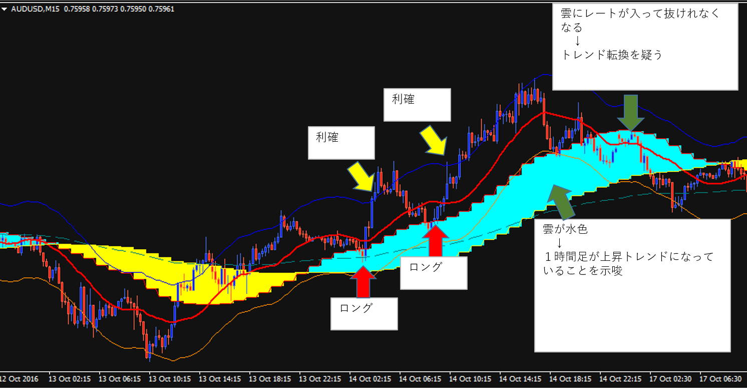 条件1.15分足チャートに上位時間足の上昇トレンドを示唆する雲が出現すること