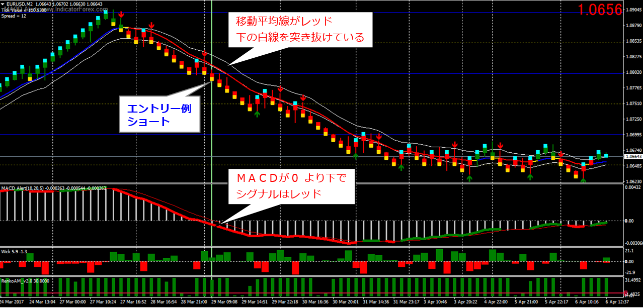 短期足(M5)のチャートには、MACD及びParabolicSARを表示させてください。