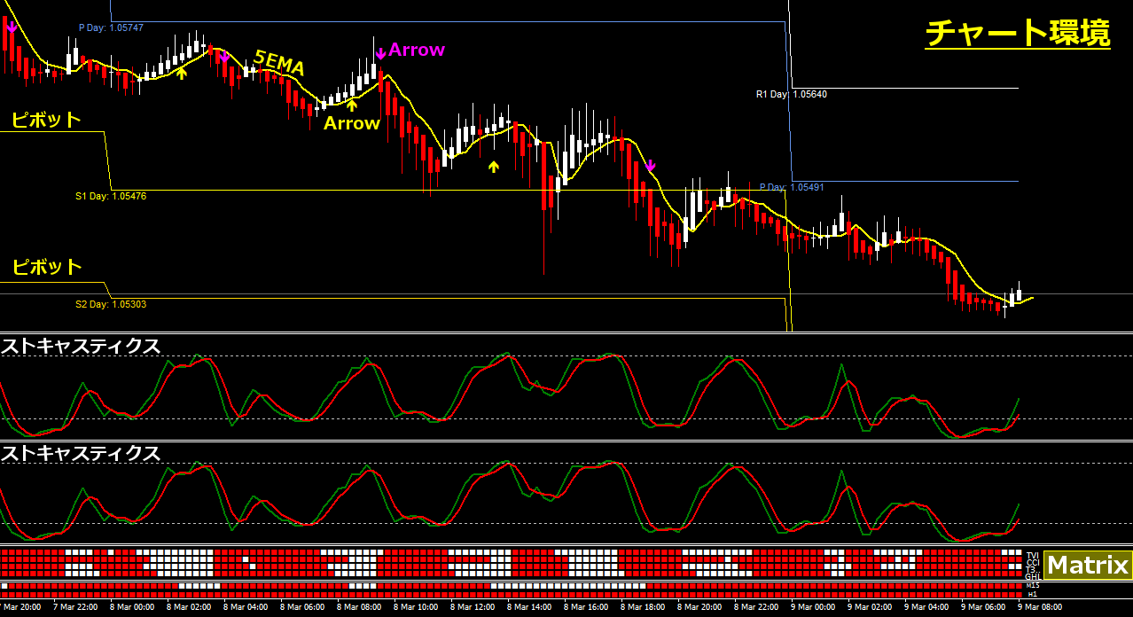 Arrow矢印については、急に値が動いたようなときには現れるのが遅れることがあるため、作者本人も必ずしも待たずにエントリーすることがあるそうです。
